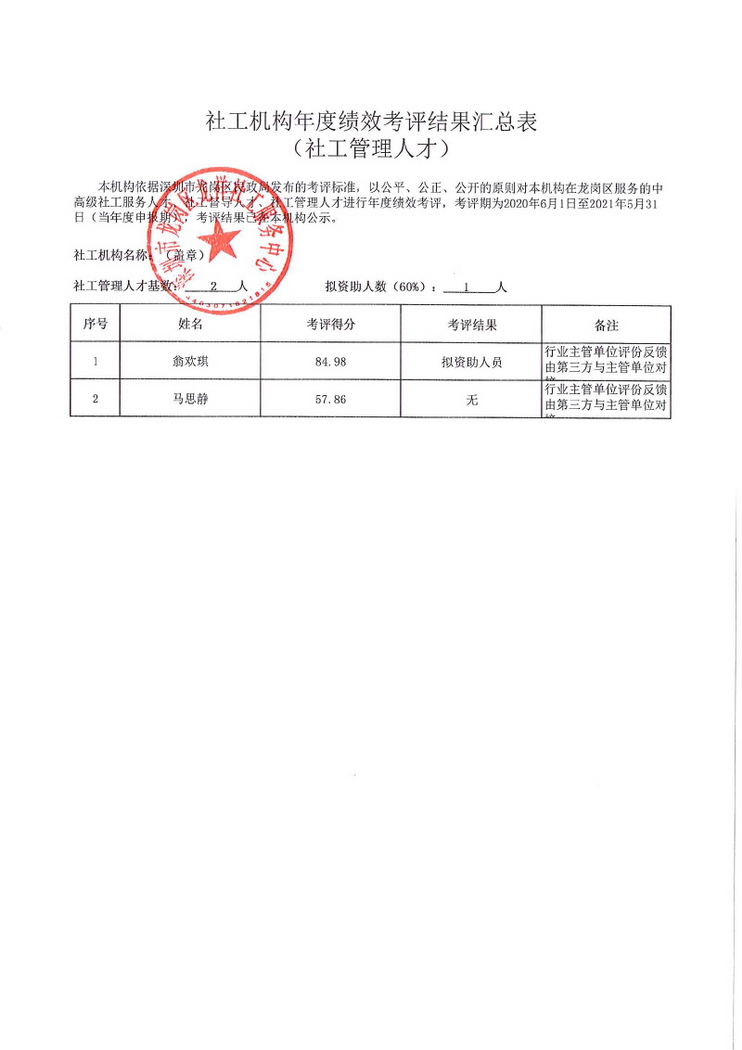 龙祥社工2021深龙社工英才计划年度绩效考核结果的公示