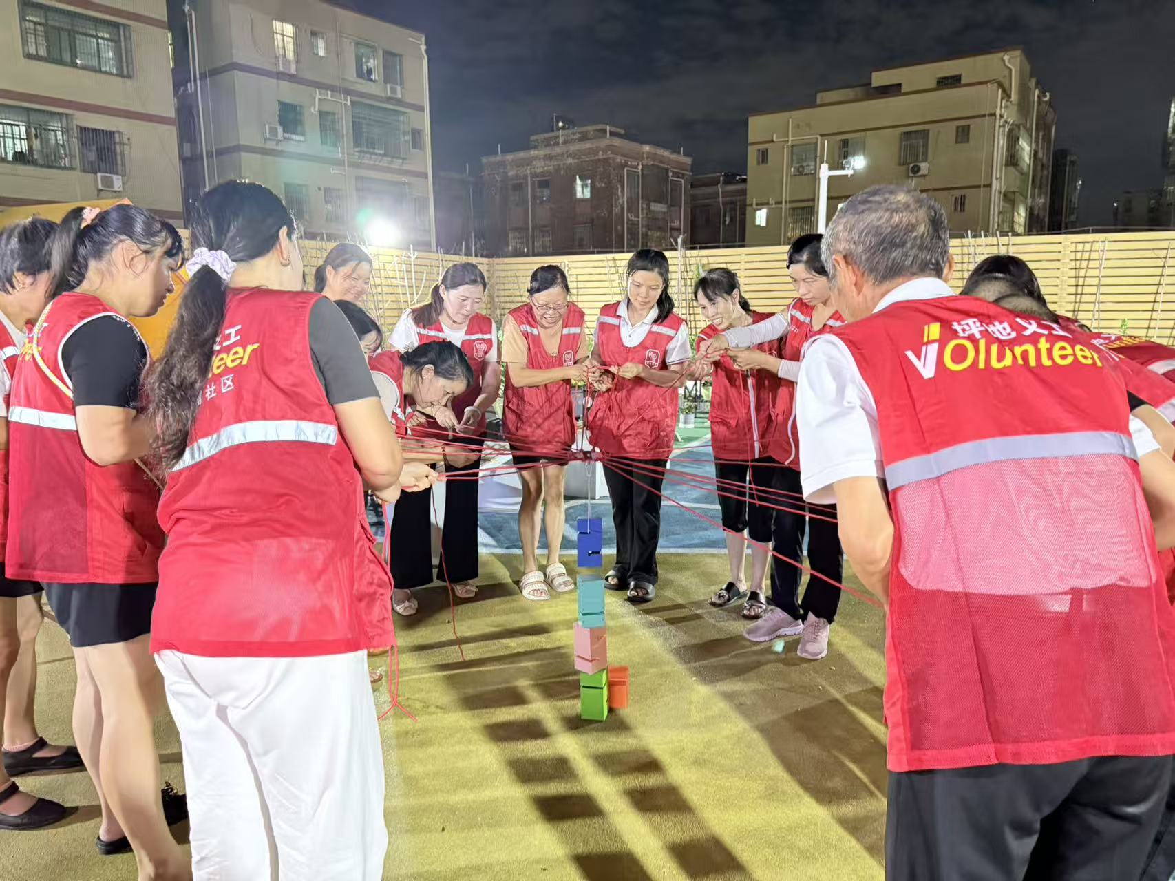 在四方埔社区党群服务中心的四方露台中,一轮明月高悬,社工与社区志愿者齐聚一堂,通过共品茶点、畅叙家常的温馨形式,围绕中秋民俗文化展开深入交流,同步分享志愿服务经验与心得,并在轻松氛围中了解志愿者的服务需求,为后续优化服务设计提供依据。在团建互动环节,志愿者们通过拉绳控制塔钩,协作搬运塔砖至指定位置并竖立搭建,默契十足、一气呵成,完成挑战!“希望多组织这类活动,认识更多的新伙伴,让更多的社区居民走进社区志愿服务大家庭!”志愿者李女士感慨道。茶话会不仅藏着中秋的暖意,更攒起了邻里共建的共识,为社区发展注入了最暖心的力量。