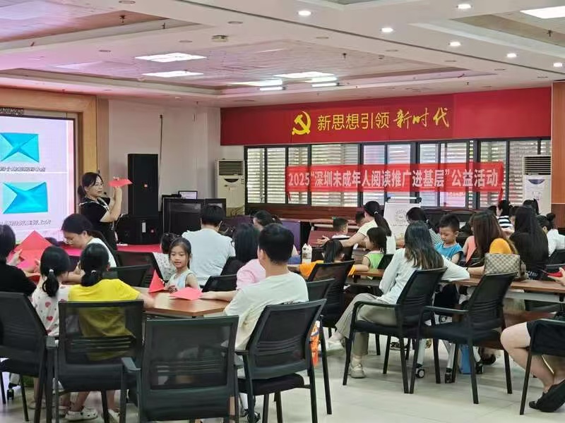 同时,为厚植爱党爱国情怀,由市委宣传部主办、深圳市阅读联合会作为总承办的“2025深圳未成年人阅读推广进基层”公益活动走进横岗街道怡锦社区,开展了“红船记忆·童心传承”主题阅读活动,通过深度绘本共读、党史知识科普和手工折纸红船等环节,让孩子们学习中国共产党百年历史、深入了解中国共产党党徽和党旗,在书香中传承红色基因。本次阅读推广活动吸引了辖区20组亲子家庭参与。