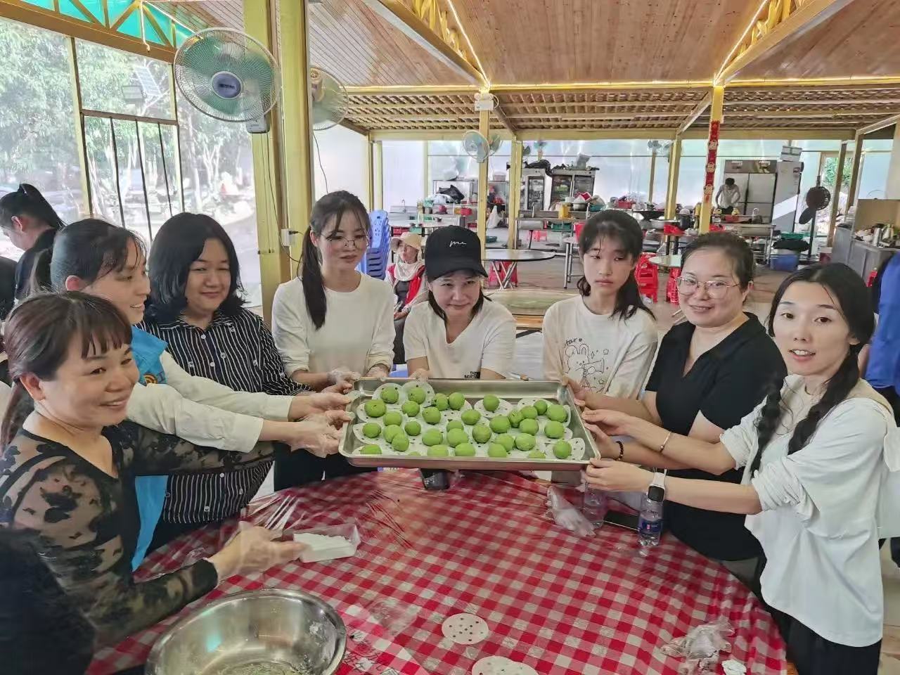 随后,在面点师傅的指导下,各组职工家庭将新鲜的艾草汁融入糯米粉中,揉制成面团,再包裹上提前准备好的香甜豆沙、芝麻花生等馅料,做成一个个圆润饱满的青团。当蒸笼升起袅袅热气,现场弥漫着艾草清香,职工家庭围坐在一起品尝青团,或交流工作心得,或分享生活趣事,在欢笑声中拉近了距离。