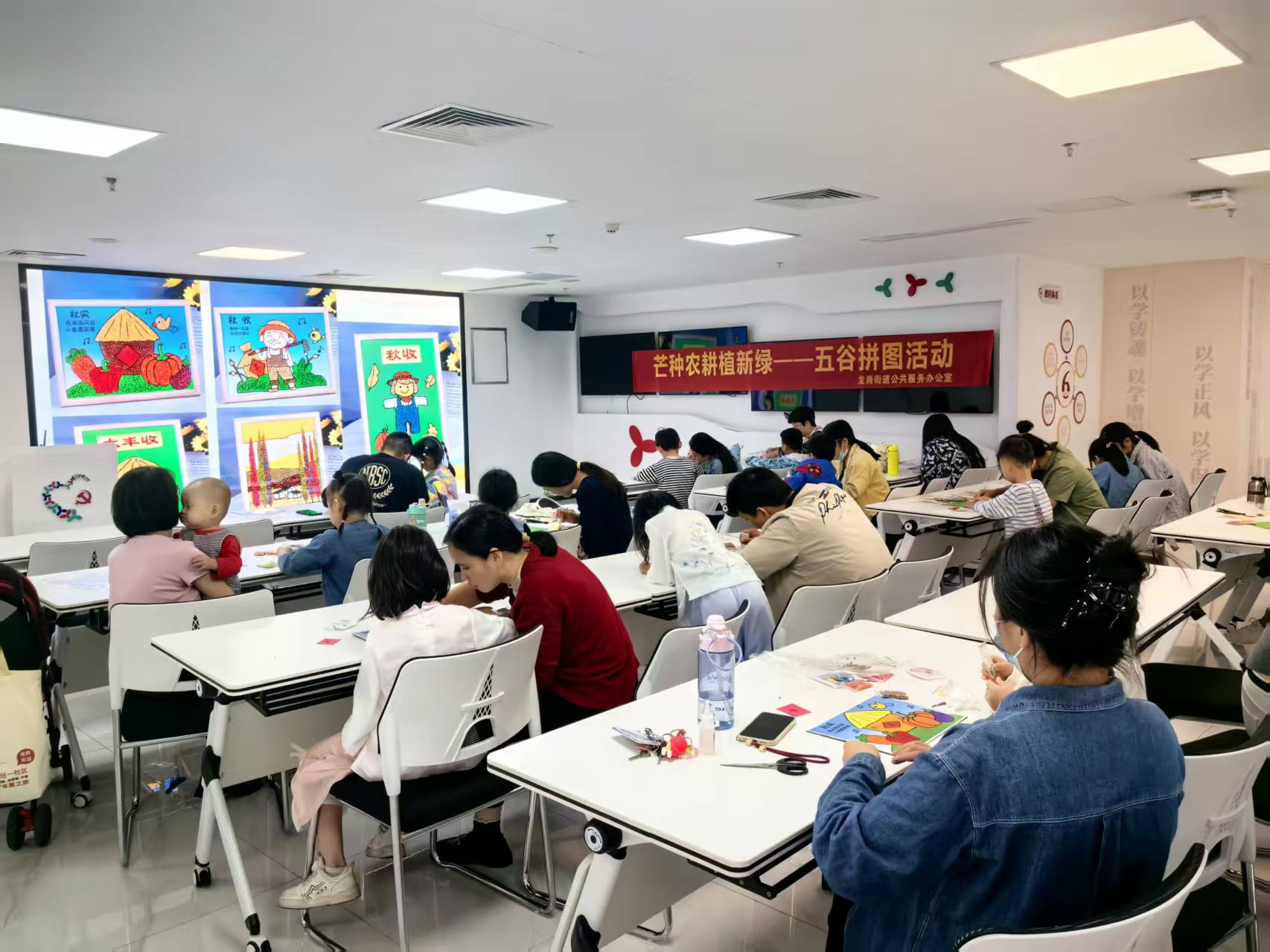 2025年11月15日,由龙岗街道公共服务办公室主办的“芒种农耕植新绿——五谷拼图”主题活动在海航城文体中心温馨举行。尽管时值初冬,活动现场却洋溢着浓厚的田园气息与节气文化氛围,吸引了20组亲子家庭热情参与。