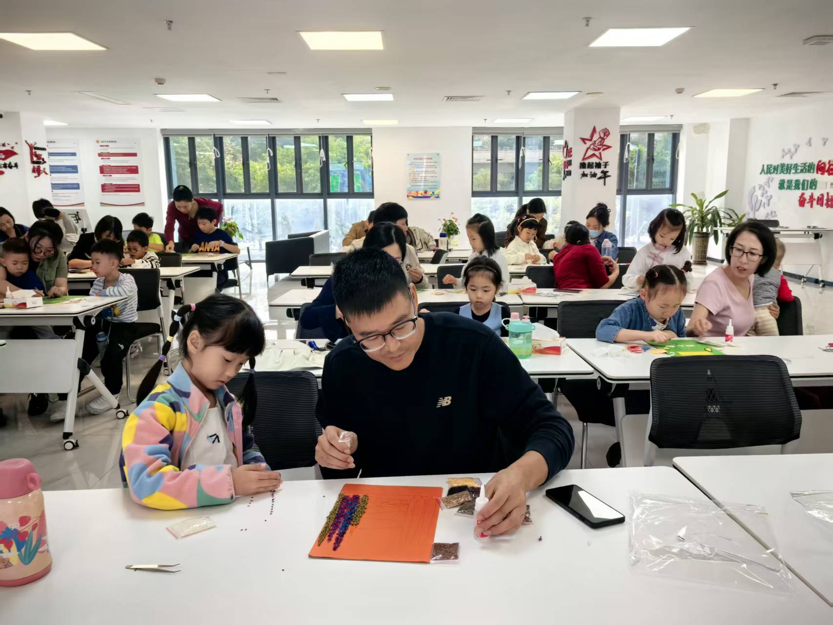 一粒谷,一份情;一幅图,一片绿。在五彩斑斓的谷物拼贴中,亲子家庭不仅绘出了心中的田园诗意,更种下了对自然的敬畏与对未来的希望。此次活动旨在通过寓教于乐的形式,深入了解传统文化,未来将持续开展形式多样的文化惠民活动,打造有温度、有内涵的文体空间。
