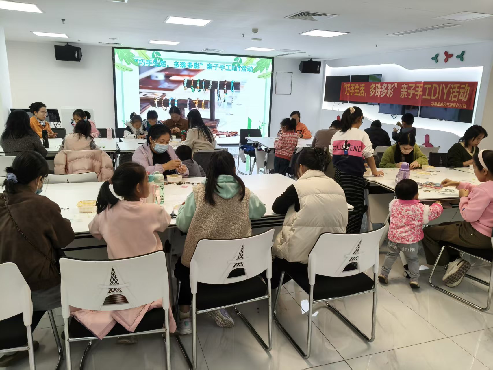 为丰富社区亲子文化生活,增进家长与孩子间的情感交流,提升儿童动手实践能力,近日,龙岗街道公服办在海航城文体中心成功开展“巧手生活,多珠多彩”亲子手工DIY活动,吸引15组亲子家庭踊跃参与。