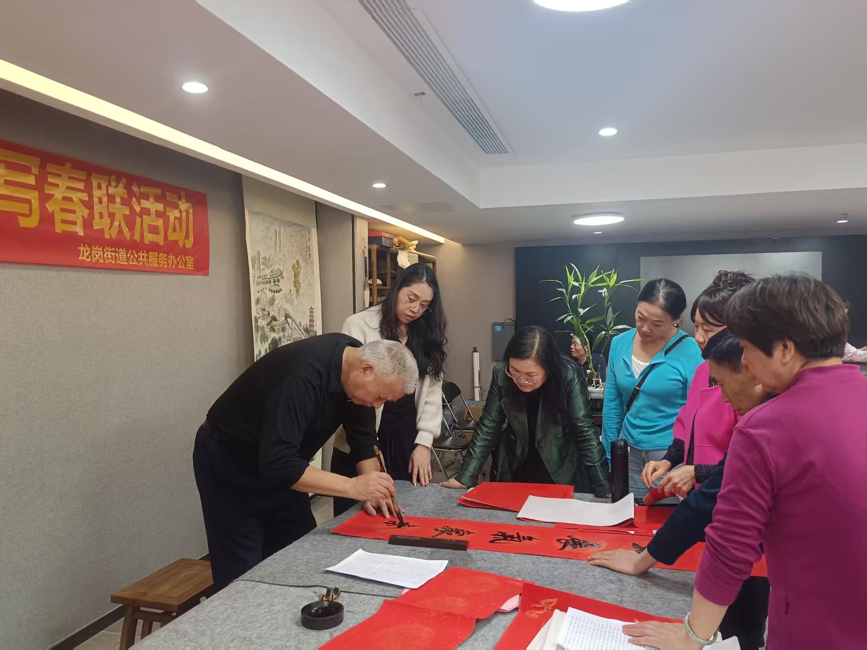 春临大地,墨润民心。春节作为中华民族最隆重的传统节日,承载着国人对团圆吉祥的期许,更是传承中华优秀传统文化的重要载体。为深挖节日文化内涵、营造新春氛围、丰富市民精神文化生活,2月6日,龙岗街道公共服务办在海航城文体开展“马跃新程·福送万家”主题的写春联活动,以笔墨传情,传递新春问候与文化魅力。