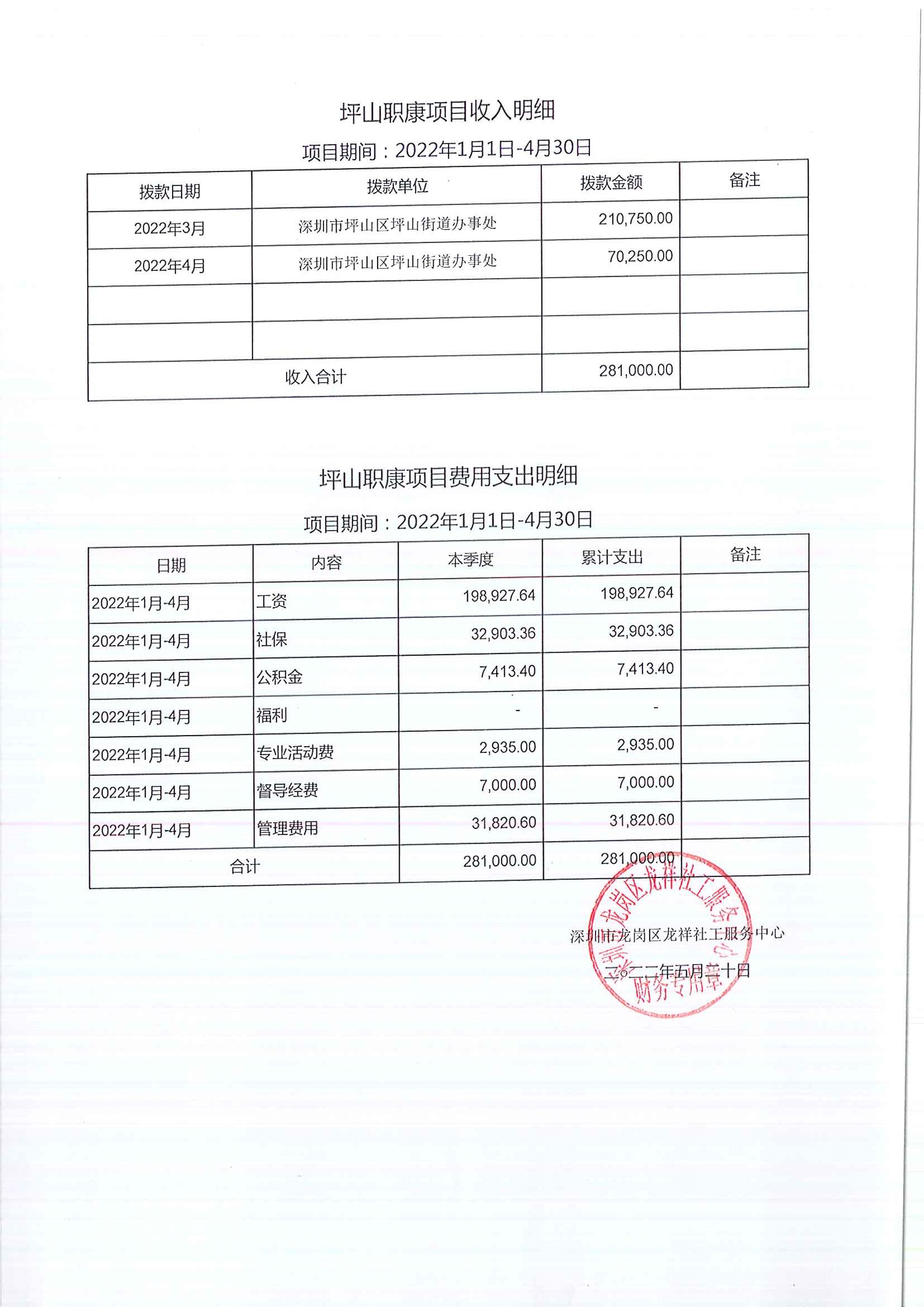 龙祥社工2022年4月份项目经费使用公示