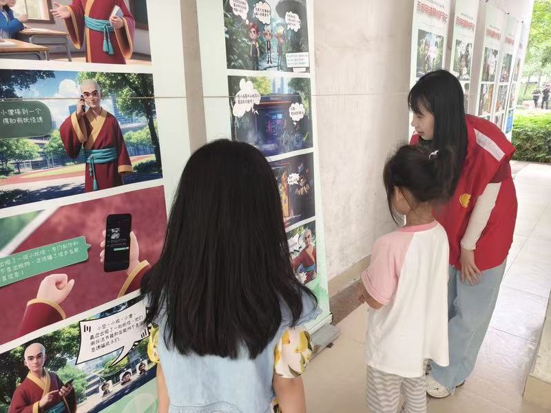 此外,活动现场还设置了“护苗·绿书签”宣传摊位,社区扫黄打非工作人员现场组织家长和孩子们观看《横岗护苗记·西游英雄的新使命》“护苗2025绿书签”活动主题AI漫画巡展,详细介绍“绿书签行动”的重要意义,引导广大居民自觉抵制盗版书籍、不良网络信息,倡导绿色阅读、文明上网的理念,共同营造清朗文化环境。