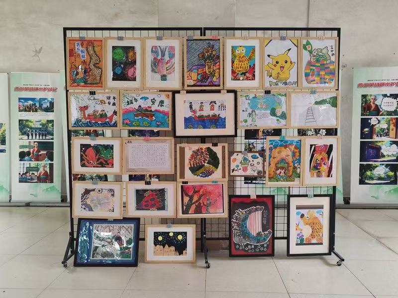 活动当天,孩子们的书画作品在悦心园小区展出,吸引许多小区居民前来驻足观赏,大家纷纷说道,“这些充满童趣的儿童画让回家的路也变得更温馨”“每天经过楼道看到孩子们书画感到特别亲切”。