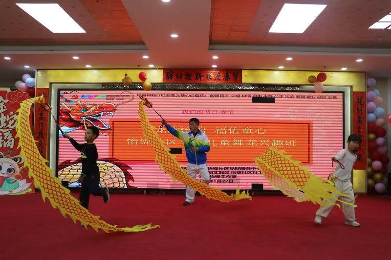 近日,2025年怡锦社区居民“村晚”联欢会的开场节目《龙腾怡锦》受到了社区居民的热烈欢迎。春节临近,为弘扬和传承非物质文化遗产,丰富社区儿童青少年的寒假生活,促进全民健身运动的发展,自1月22日起,横岗街道怡锦社区开展了首期“龙腾怡锦·福佑童心”舞龙兴趣班,吸引众多儿童青少年踊跃参与。