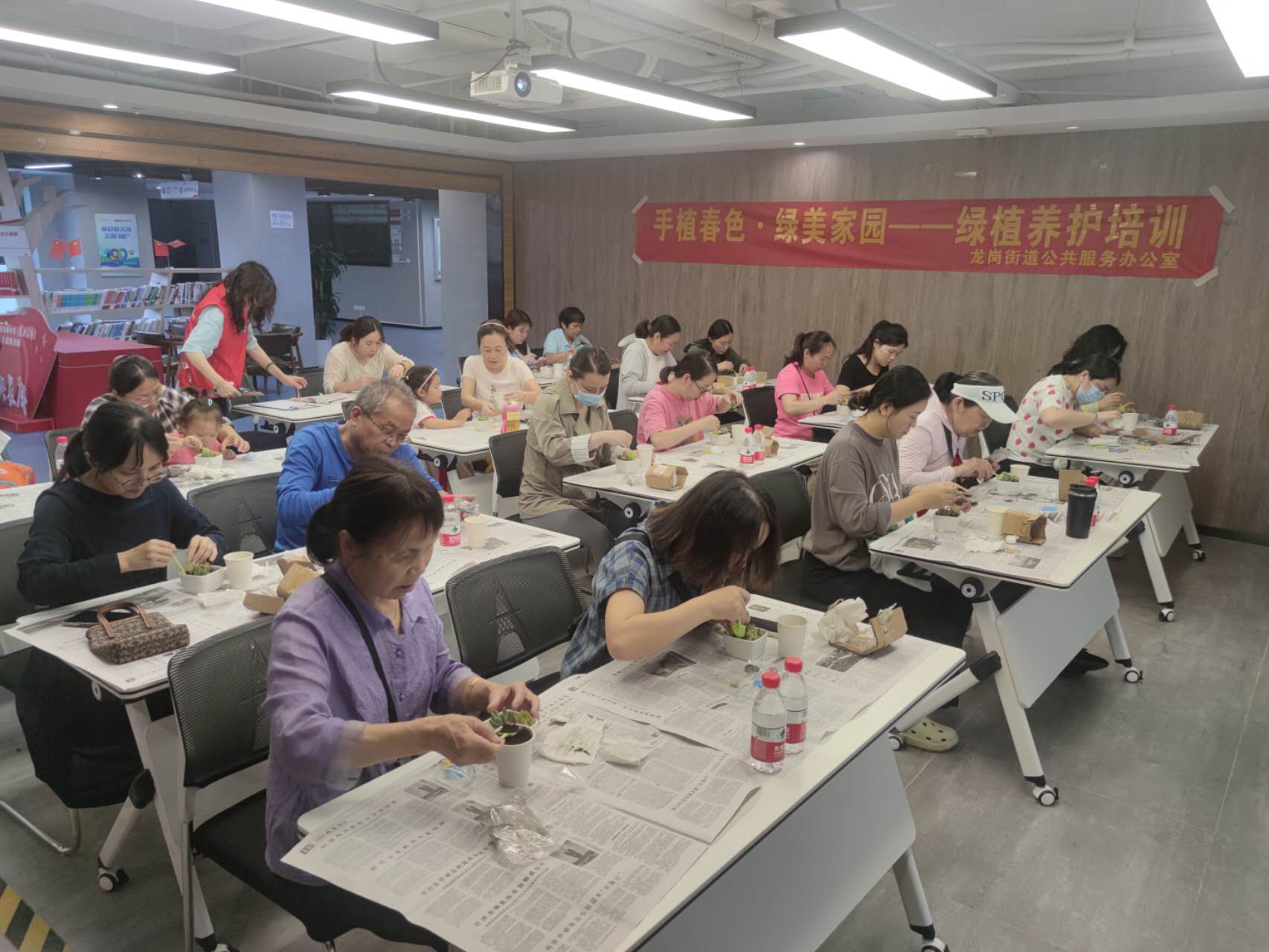4月29日下午,龙岗街道公服办在海航城文体中开展了手植春色·绿美家园——绿植养护培训活动。